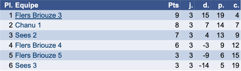 Victoire de l’équipe 3 contre l’équipe 5 5-3 ! L’équipe 4 fait nulle 4-4 contre l’équipe de Sées 2 !